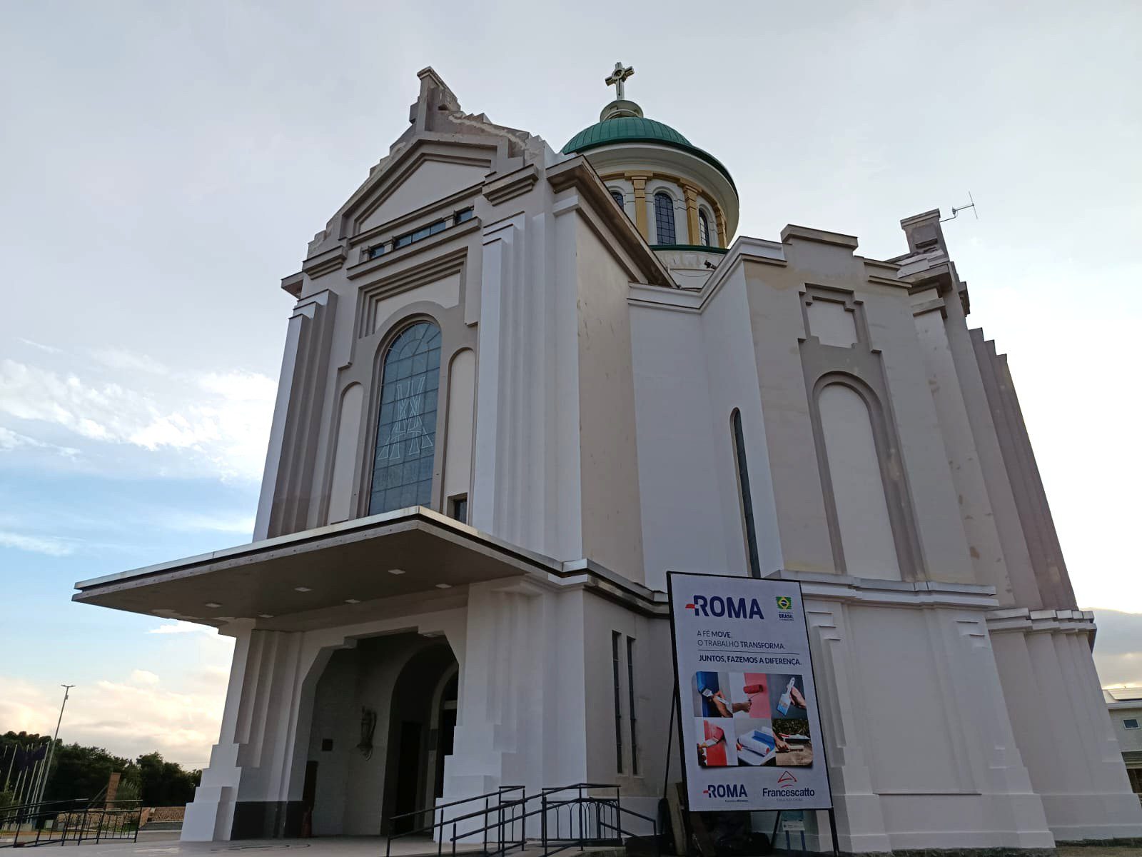 A nova tonalidade utilizada para pintura é conhecida como “incenso do sândalo”, uma cor próxima ao branco que será aplicada em todo o santuário no padrão monocolor. Fontana destaca que o serviço é executado por apenas dois profissionais devido às limitações da plataforma elevatória utilizada na obra, o que torna o processo mais lento. Mesmo assim, partes da estrutura, como a cúpula e a área dos vitrais, já apresentam o resultado da revitalização.