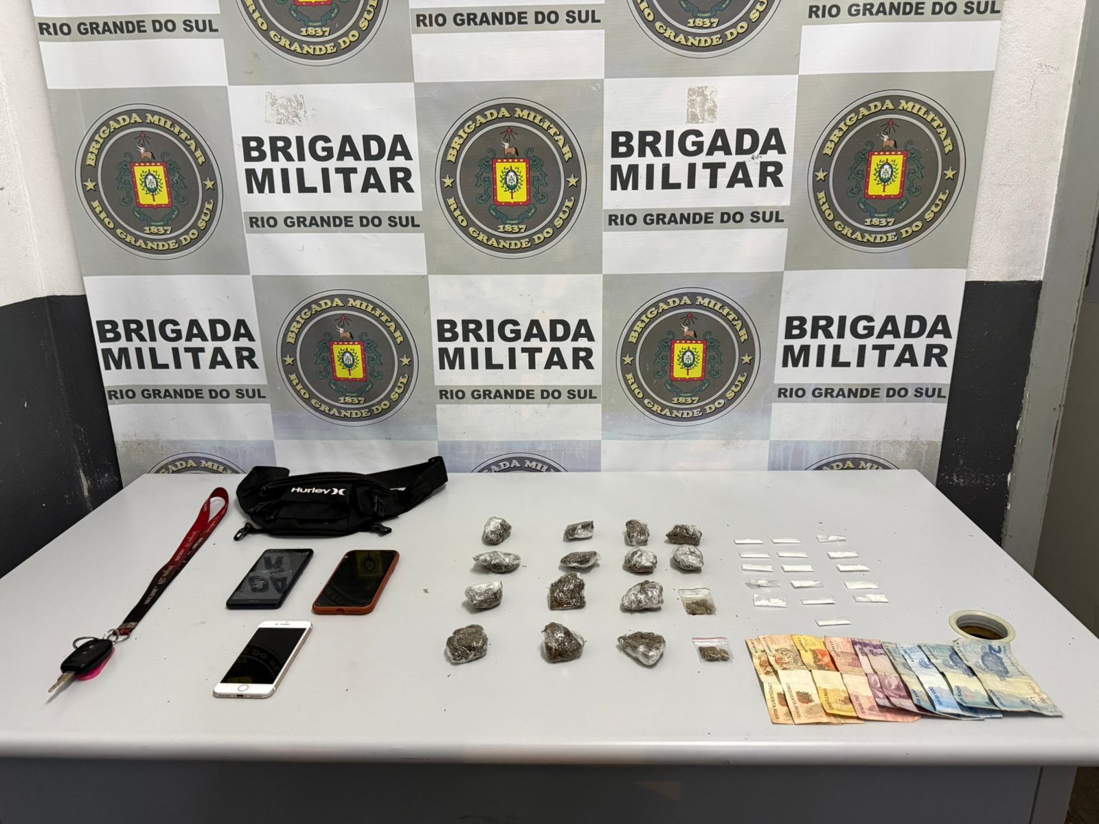 Três indivíduos foram detidos em ocorrências distintas relacionadas aos crimes de tráfico de drogas e porte ilegal de arma de fogo na madrugada desta terça-feira, 17, em Caxias do Sul. De acordo com a Brigada Militar (BM), o primeiro caso foi registrado no bairro Kayser onde um indivíduo, de 22 anos, foi abordado e estava em posse de um revólver calibre 22. No bairro Oriental, com um suspeito foi apreendida uma pistola calibre nove milímetros, drogas, dinheiro e materiais relacionados ao tráfico. O último registro aconteceu no bairro Planalto, onde um motorista foi abordado e estava em posse de porções de cocaína e maconha, além de dinheiro e celulares. Dois menores que estavam no veículo também foram apreendidos. Todos os envolvidos foram encaminhados à delegacia.